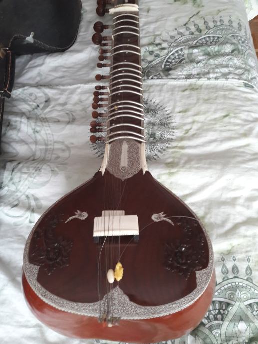 Sitar, kupljen v Varanasiju, s kovčkom.