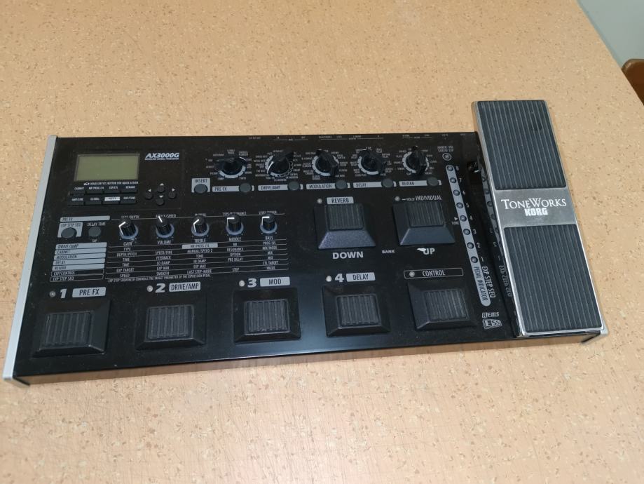 Multiefekt Korg AX3000G ohranjen z navodili za uporabo in kovčkom izdelanim po naročilu, naprodaj.