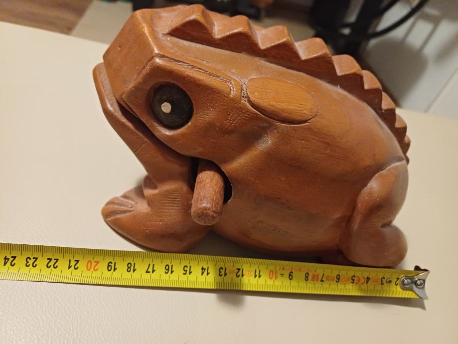 Prodam nerabljeno pojočo žabo velikosti približno 21 cm. Ima lep zvok.