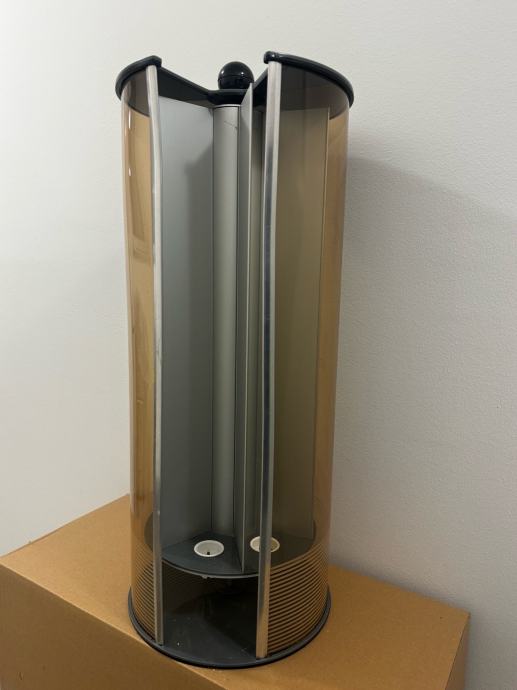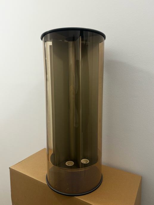 Profesionalni držalnik za sladoledne kornete, primeren za slaščičarne, kavarne, stojnice ali mobilne sladoledne aparate. Ohišje je iz trpežnega prozornega materiala s pokrovom, ki ščiti kornete pred prahom in vlago. Lepo ohranjen in primeren za večje količine kornetov.