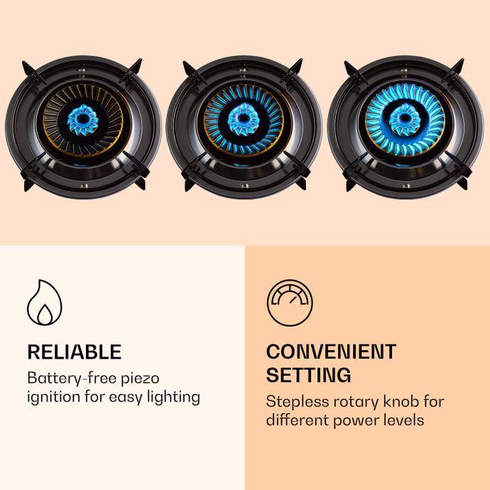 Kuhalno ploščo lahko preprosto upravljate z dvema brezstopenjskima vrtljivima gumboma in vgrajenim električnim vžigom Piezo. Brezstopenjski nadzor moči omogoča počasno kuhanje ter hitro segrevanje in cvrtje. Po uporabi lahko kuhalno ploščo zaradi kombinacije površine iz nerjavečega jekla in stekla v hipu spet očistite. Zaradi svojih kompaktnih dimenzij je kuhalna plošča Barzona 2 podjetja Klarstein idealna kot spremljevalec na poti, na primer na kampiranju ali ob poletnem bivanju v vrtni hiši.