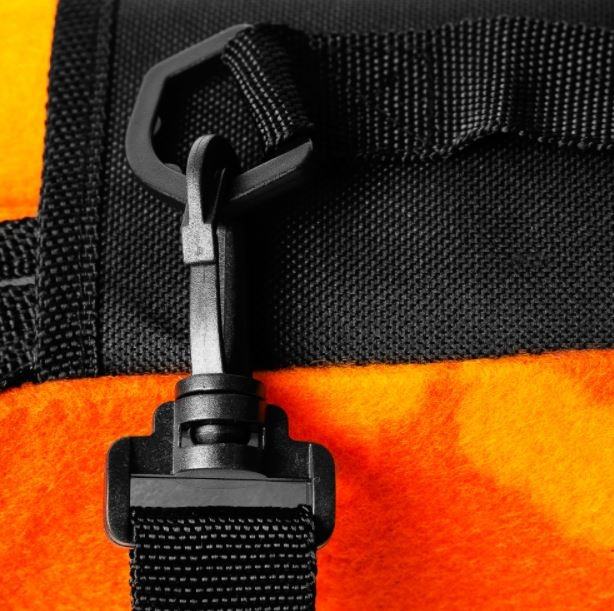 Oranžna piknik podloga velikosti 150 x 180 cm ima 2mm debelo peno, ki povečuje udobje uporabe. Spodnji sloj je narejen iz aluminijaste folije proti vlagi ter za toplotno izolacijo. Zgornja plast je iz flisa. Uporabimo jo lahko tudi kot podlogo za igro doma in druge aktivnosti na prostem, primerna tudi za plažo.