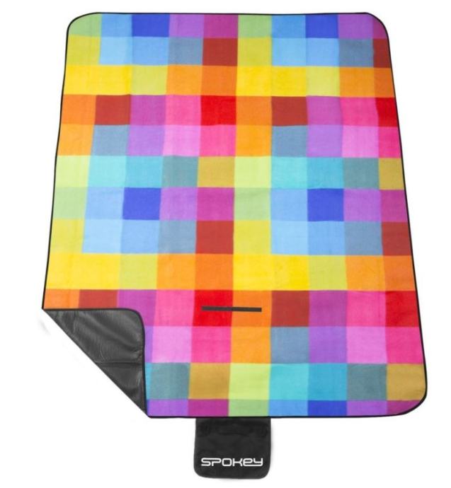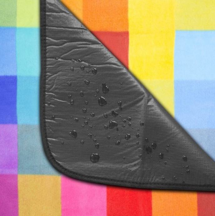 Piknik tepih velikosti 130 x 150 cm za preživljanje prostega časa na pikniku ali na plaži. Spodnja plast je odporna na vlago. Vrhnji sloj iz flisa je zelo prijeten na dotik. Snemljiv pas za nošenje. Tro-slojna struktura zagotavlja vzdržljivost odeje in povečuje udobje njegove uporabe.