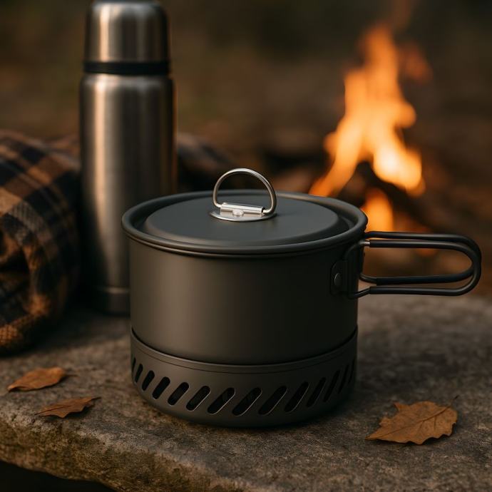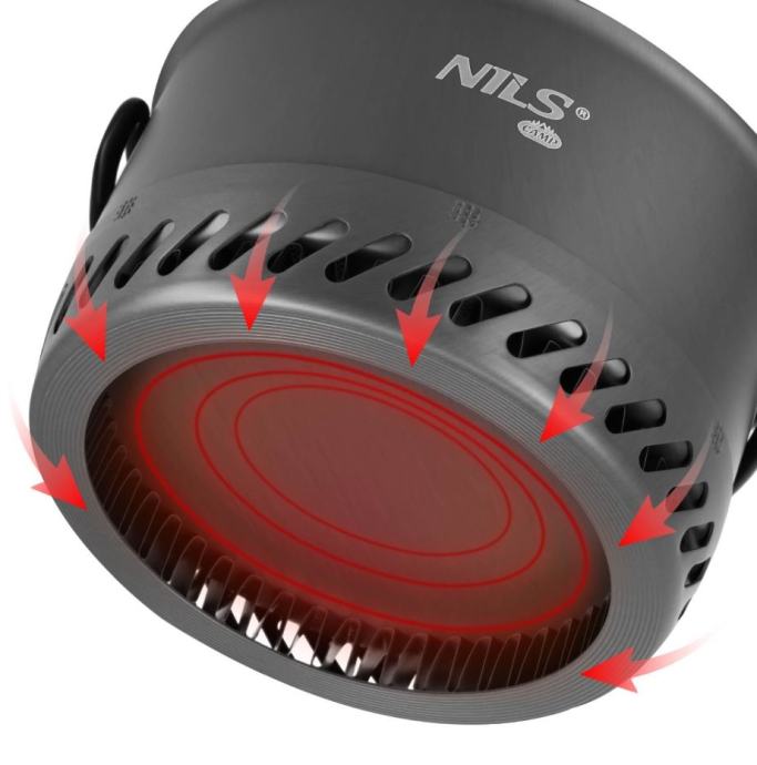 Na dnu lonca je posebna grelna plast, ki poveča površino stika s plamenom. Zahvaljujoč temu se toplota enakomerneje porazdeli! Lonec za kampiranje je opremljen z jeklenim ročajem, ki je prevlečen s silikonom, odpornim na visoke temperature. Ročaj je zložljiv, kar omogoča enostaven transport in shranjevanje. S prostornino 1000 ml in optimalnimi dimenzijami (premer 14,5 cm in višina 9 cm) je idealen za vrenje vode, pripravo preprostih obrokov ali segrevanje hrane.
