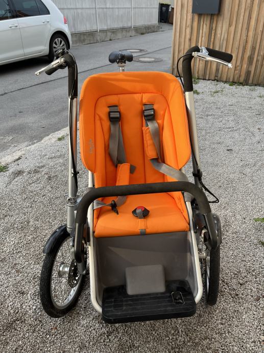 Prodam kolo Taga, ki omogoča vožnjo otroka na sedežu spredaj. Otrok sedi v sedežu s pettočkovnim pripenjanjem. Kolo smo uporabljali s hčerko, ki ima cerebralno paralizo. Ena od zračnic je potrebna zamenjave. Kolo ima tri prestave in je odlično obense za vožnjo po mestu. Smo drugi lastniki, a smo kupili nov otroški sedež, ki je kot nov (hranjen je bil v hiši).