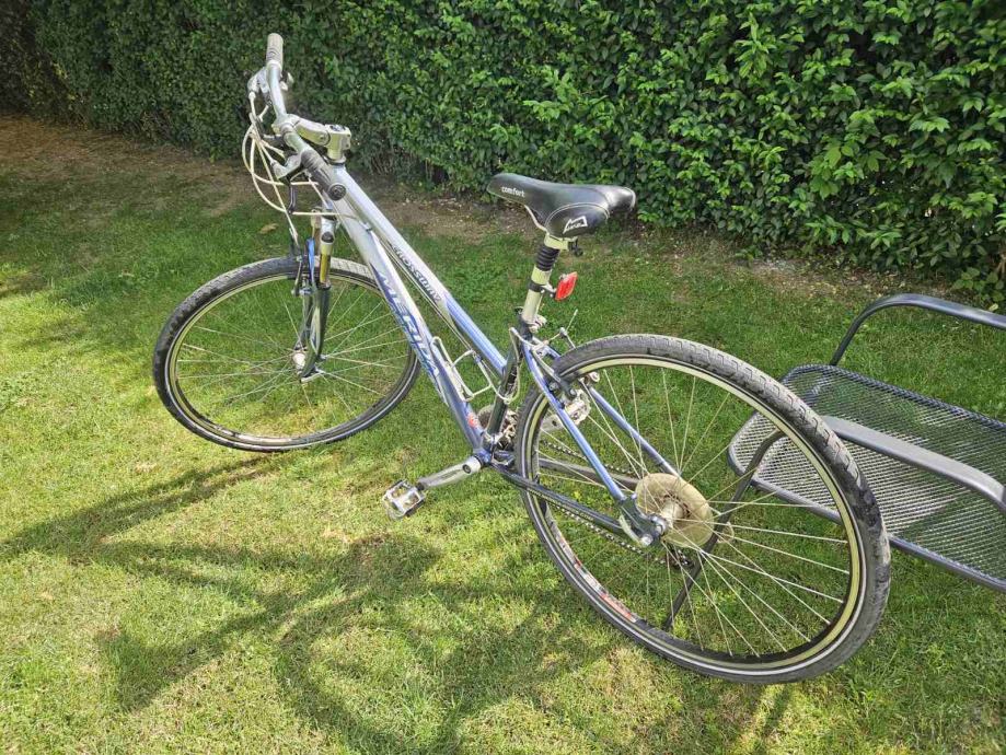 Prodam ohranjeno žensko treking kolo Merida Crossway 8700. Okvir je aluminijast, velikost 42 cm, primeren za velikost kolesarke od slabih 155 cm do slabih 165 cm. Menjalnik Shimano Deore, 21 prestav. Za več informacij pokličite 031 828 999