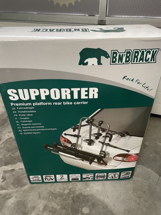 Prodam še nikoli uporabljen, original zapakiran v škatli kolesarski prtljažnik za na avto BNB RACK Supporter.