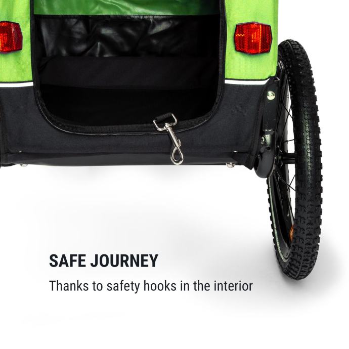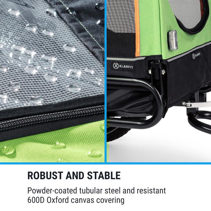 Klarfit Corgi prikolica za kolo in voziček za psa 2 v 1 prepriča na dveh različnih področjih uporabe: po eni strani kot prikolica za kolo, pri čemer lahko 52 cm dolgo prikolico s prednamečeno spojko hitro in preprosto namestite na zadnje kolo kolesa. Po drugi strani pa lahko dodatek uporabljate kot voziček za psa, ki vam bo izredno prav prišel med tekaškimi izleti ali daljšimi pohodi v naravo. V tem primeru lahko ojes preprosto namestite na sprednje kolo, medtem ko zadaj namestite ročaj na dveh drsnih elementih, ki sta že vnaprej pripravljena za montažo ročaja. Po drugi strani pa lahko, če profesionalne prikolice/vozička trenutno ne potrebujete, v trenutku odstranite zadnji kolesi in voziček v nekaj preprostih korakih zložite.