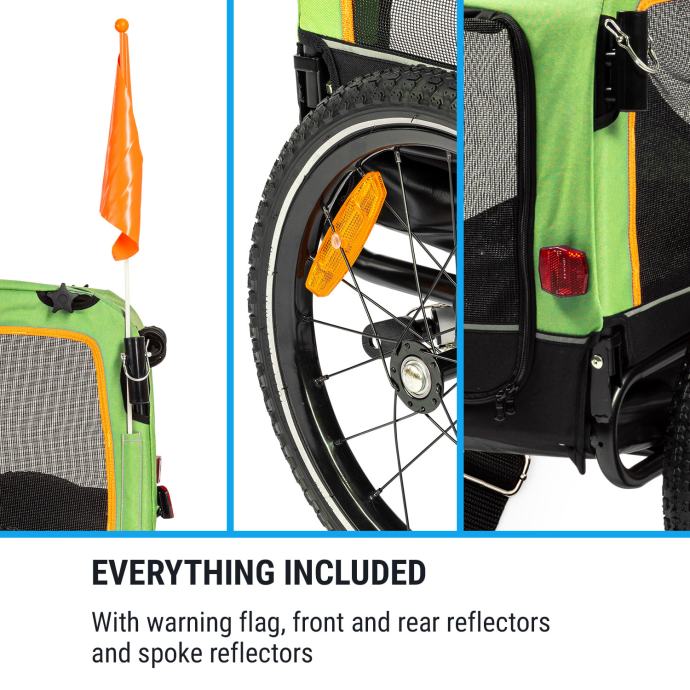 Corgi 2 v 1, prikolica in voziček za pse, 600D Oxford, jeklena cev, opozorilna zastava