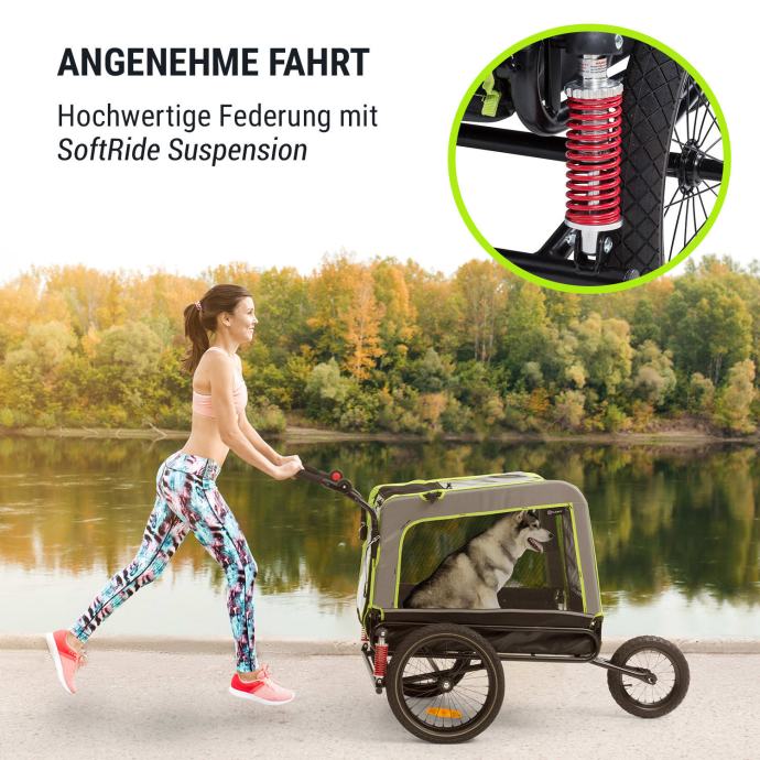 Za prijatelje, od katerih se ne morete ločiti: uživajte ob uporabi prikolice & vozička za pse Klarfit Husky 2 v 1 ter skupaj s psom delite kolesarske ture in prijetne izlete.