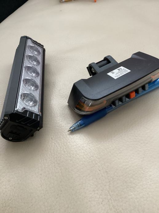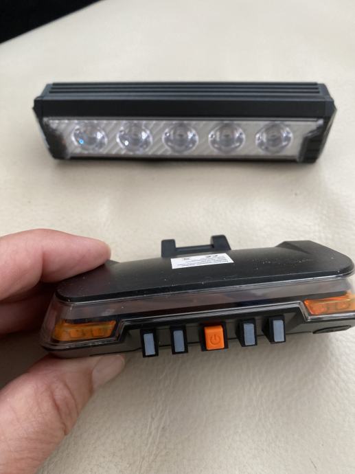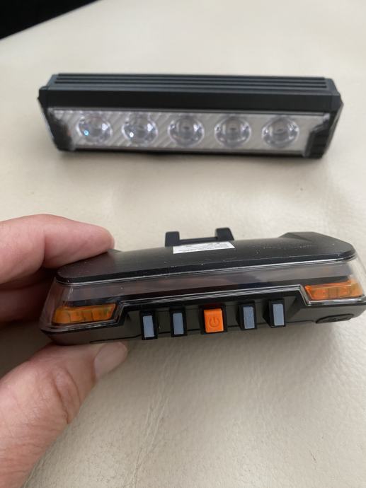 Kolesarska led luc /zelo mocna z vec funkcijami, v kompletu z zadnjo lucjo, ima stop luc in zmigavci levo/desno