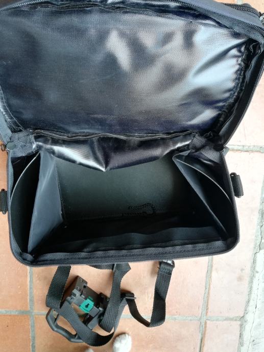 Prodam kolesarsko torbo Lohr za na krmilo nikoli rabljeno.Je snemljiva z pasom za čez ramo,z tremi zunanjimi predali,dva notranja in plastifikacija za zemljevid...041 722 325