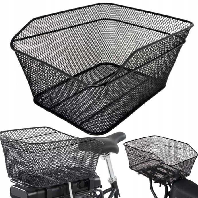 Praktična in robustna kolesarska košara za nosilec koles iz robustne kovinske mreže.