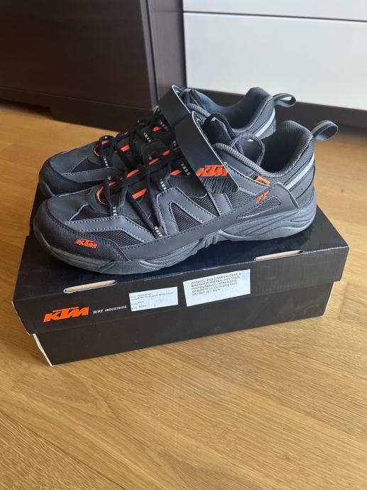 Ugodno prodam zelo malo rabljene KTM kolesarske čevlje, primerna za MTB in treking kolesa. Čevlji so v originalni embalaži in imajo nastavek tudi za SPD pedala. So številka 45, vendar so v resnici bolj primerna za nogo številka 44.