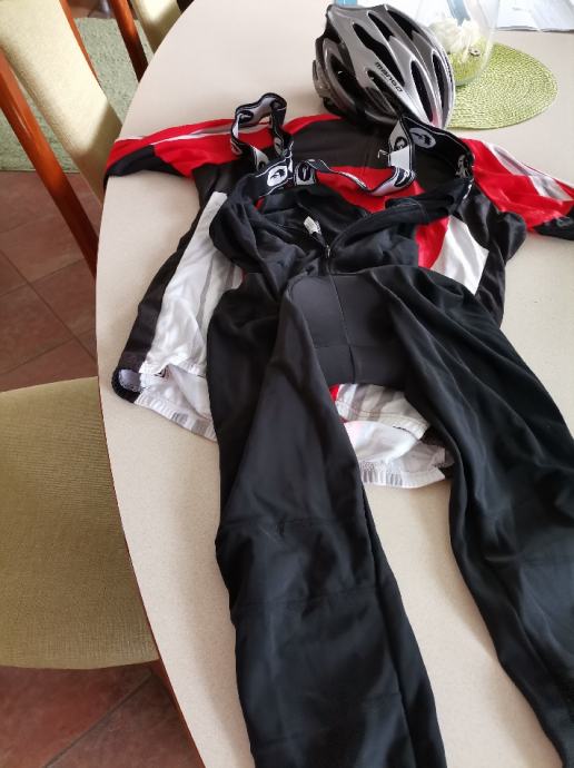 Prodam 3x uporabljeno moško kolesarsko opremo znamke Žolna, velikost L, v kompletu so hlače z naramnicami, majica in čelada, v kombinaciji barv rdeča, siva, črna, bela. Ivančna Gorica