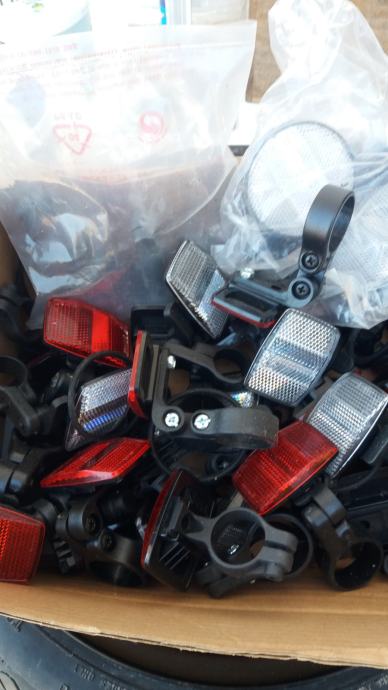 Prodam ,več kosov belih in rodečih odsevnikov za kolesa ,motorje ,prikolice in še kaj .Odsevniki so nerabljeni .Prodam v kompletu ali več kosov skupaj . Menjam za kaj ,ki me zanima .