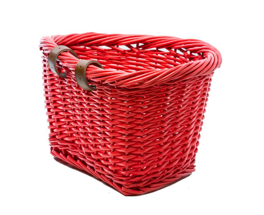 Prodam pleteno rdečo kolesarsko košaro za kolo, ki ni bila nikoli uporabljena in je kot nova. Dobili smo jo za darilo. Košara paše praktično na vsa kolesa za odrasle, saj se na krmilo pritrdi za usnjenimi paščki. Dimenzije: 35cm x 27cm x 24cm.