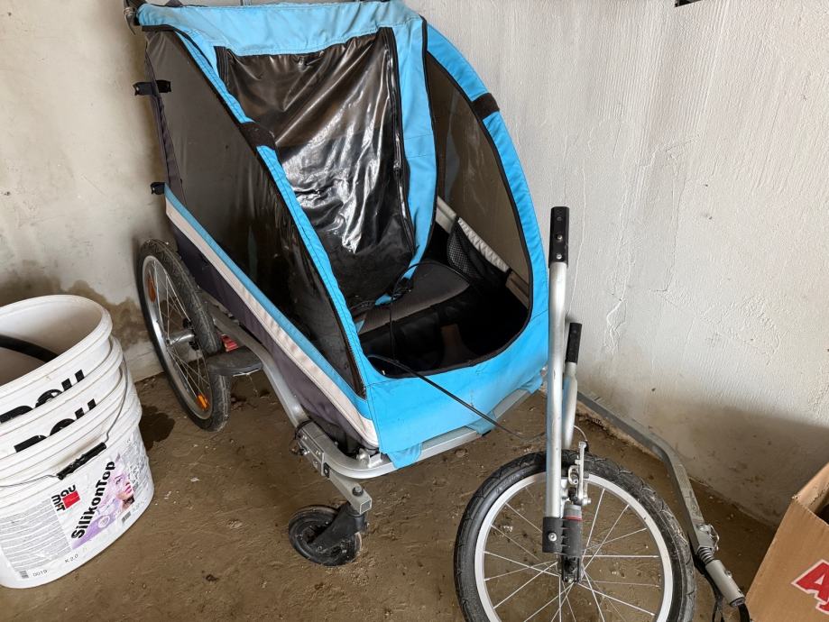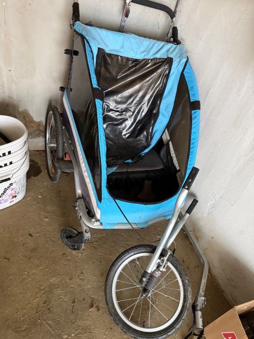 Prodam rabljeno kolesarsko prikolico modre barve, primerno za prevoz enega ali dveh otrok. Iz aluminija in ni težka. Prikolica je prostorna, z varnostnim pokrivalom in stabilno konstrukcijo za varno vožnjo.