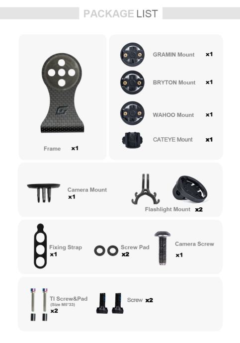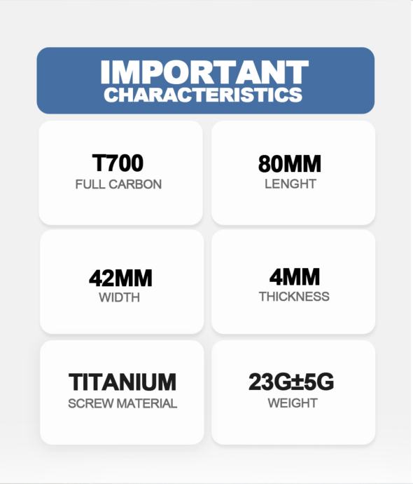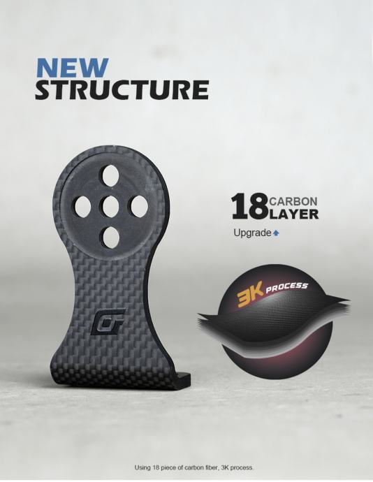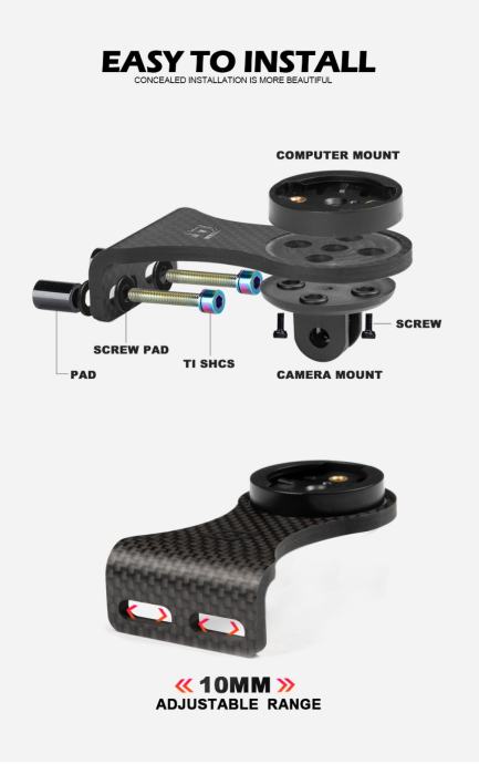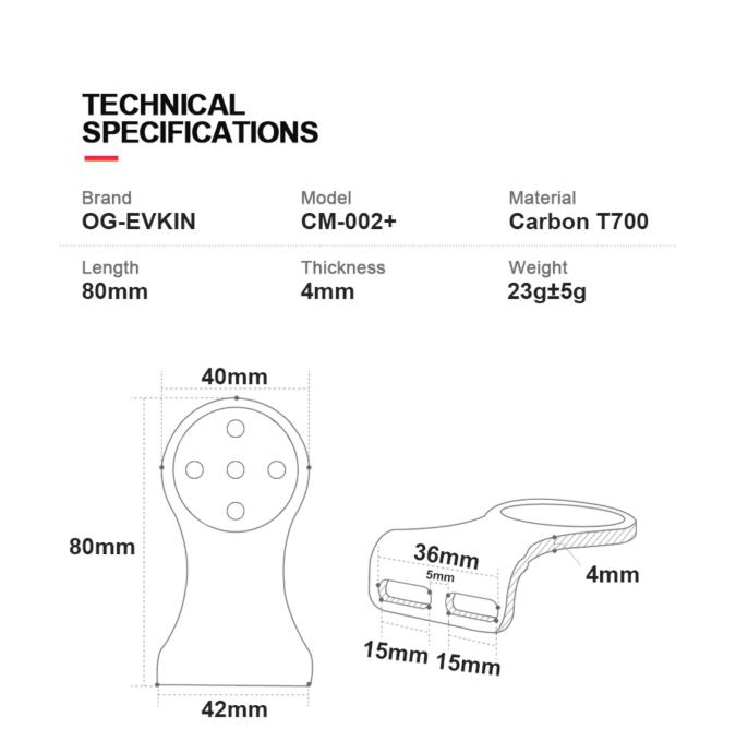 Nosilec je izdelan iz ogljikovih vlaken (carbona) in omogoča enostavno pritrditev različnih naprav s stardardnimi priključki.