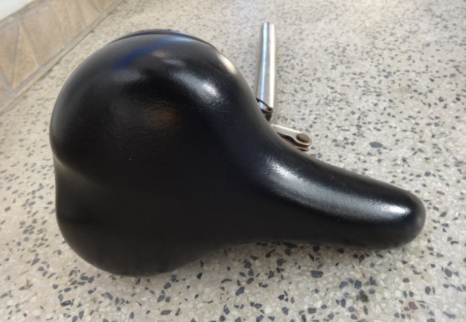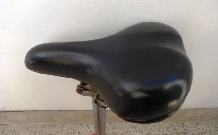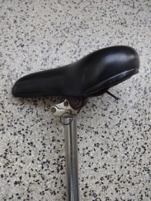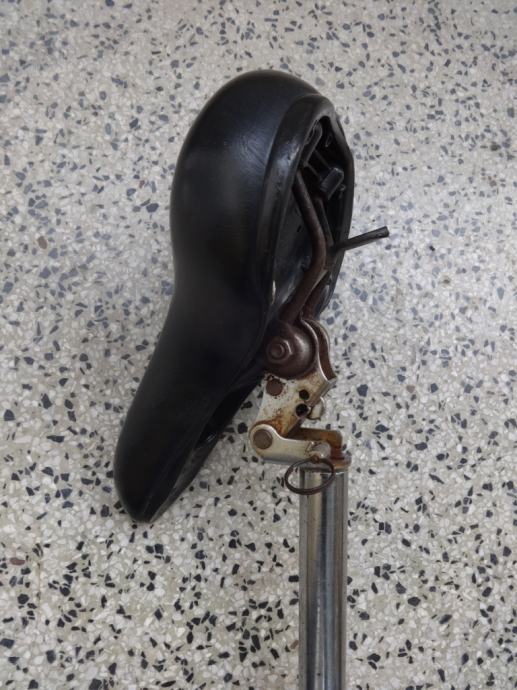 Kolesarski sedež za električna kolesa - z mehanizmom za zvračanje (skipanje) sedeža naprej, ki omogoča izvlek baterije za sedežem.