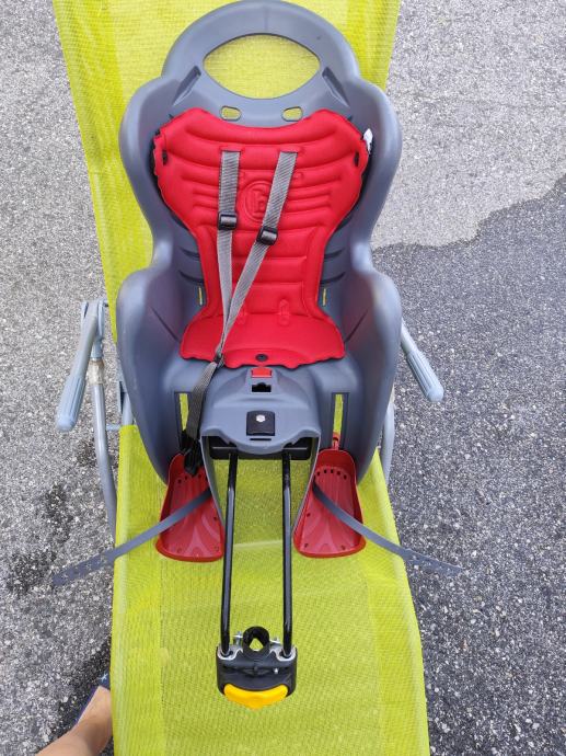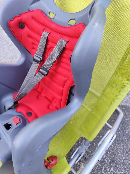 Cca. 3x uporabljen sedež, z nosilcem, ki smo ga dokupili posebej. Sedež je ob strani malo popraskan, zaradi prestavljanja iz kota v kot.
