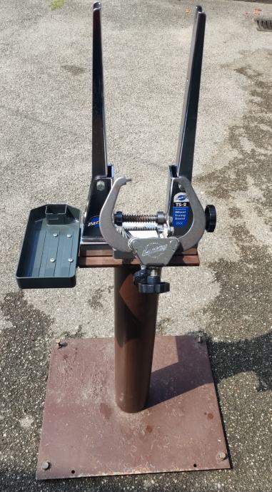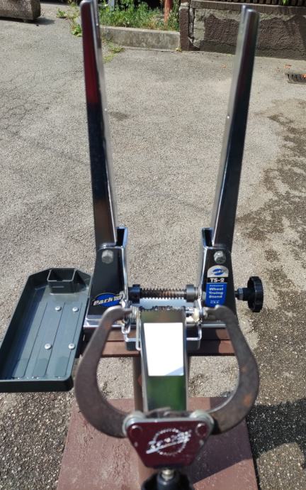 Prodam stojalo za centriranje koles Park tool TS-2 v brezhibnem stanju. Stojalo je nameščeno na močnem samostoječem stojalu. Zraven priložim tudi adapter za 12,15 in 20mm thru axle.