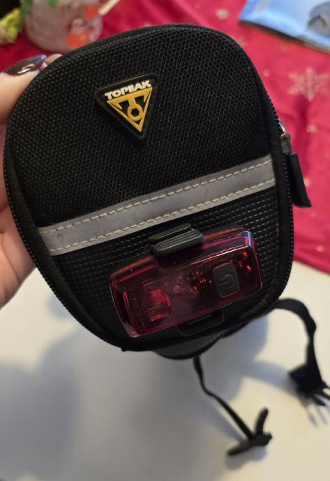 Prodajam malo rabljeno kolesarsko torbico Topeak Aero Wedge Medium Click v odličnem novem stanju. Torbica ima praktičen pritrditveni sistem in vključuje rdečo LED luč za večjo varnost med vožnjo. Odlična izbira za shranjevanje nujnih potrebščin med kolesarjenjem.