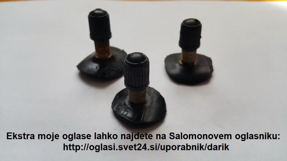 Prodam 3 ventile od zračnic za Xiaomi m365 PRO električni skiro. Zadeve so bile izrezane ven iz prekomerno poflikanih zračnic, primerne za t.i. "Tubeless" zunanje plašče (za ta električni skiro ali drugega podobnega). Ventile se pa lahko tudi uporabi za kak DIY ali How2 projekt lastne izdelave pločevinke s stisnjenim zrakom, barvo (sprej) ali za peskanje. Lahko tudi še za kaj drugega kar Vam pade na pamet. Prodam samo v kompletu, nič posamično (načeloma). Že čakajo na svojega novega lastnika.