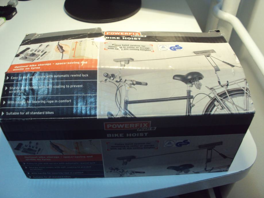 Stropno dvigalo znamke Bike-Horst vam omogoča izkoristek neuporabljenega stropnega prostora za shranjevanje vašega kolesa. Ugodno je uporaben v kleti,, lopi ali v garaži. Namestitev sistema je izjemno hitra, saj so priloženi dodatki za montažo. Glej tudi slikovno prilogo.