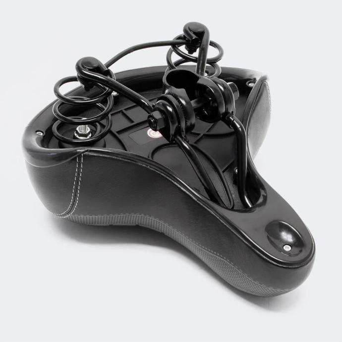 Vzmetni jekleni okvir sedla zmanjšuje udarce, ki jih povzroča neenakomeren teren, in s tem zmanjšuje obremenitve na hrbtni strani.