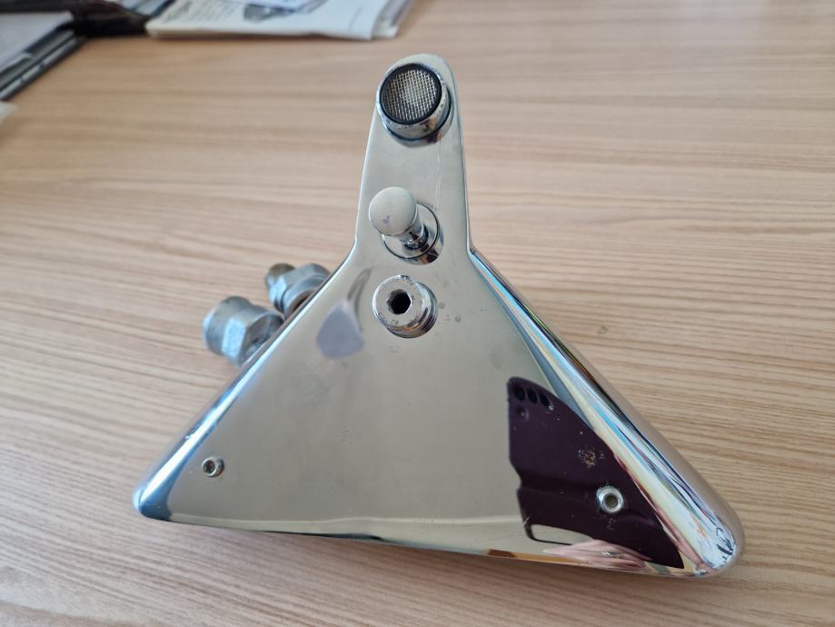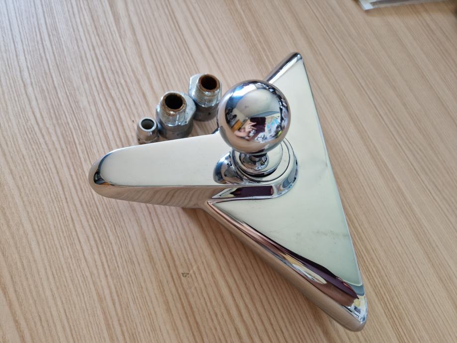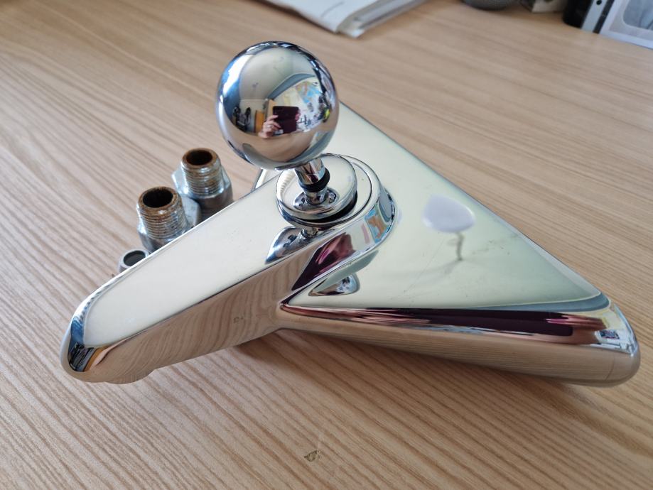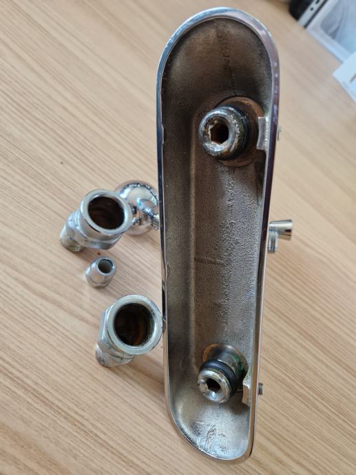 ARMATURA ZA KOPALNO KAD TRIKOTNA z izlivom in priključkom za cev za prho, ohranjena, prodamo, ker je ne potrebujemo več.