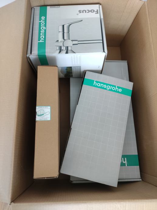 Prodam kopalniške pipe Hansgrohe serije Fokus krom, kot na priloženih slikah. Umivalniška pipa je višine 190 mm. Tipka za wc Mepa Zero bela in bide Jika Mio.