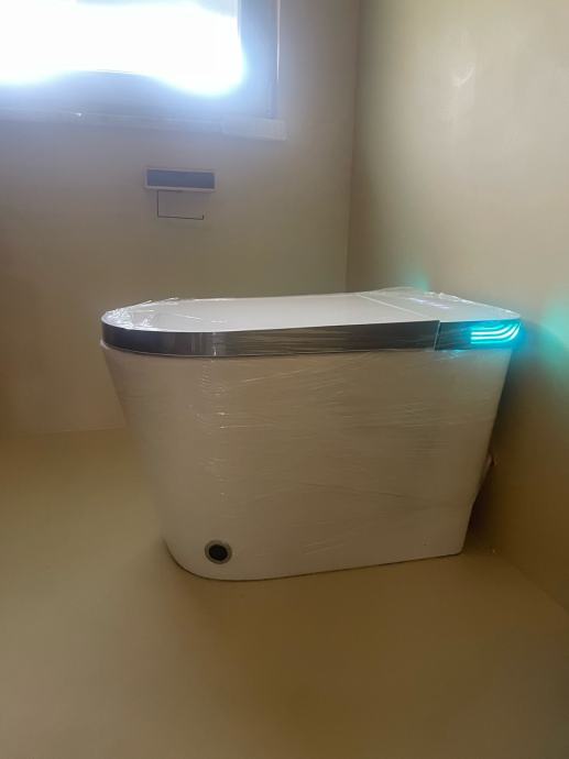 Prodajam popolnoma novo pametno WC školjko z modernim dizajnom in naprednimi funkcijami. Opremljena je z daljinskim upravljalnikom in LED osvetlitvijo za udobno uporabo. Pametna tehnologija vključuje več nastavitev za popolno higieno in maksimalno udobje. Na sliki je raztavljena školjka, školjka v prodaji je še zapakirana