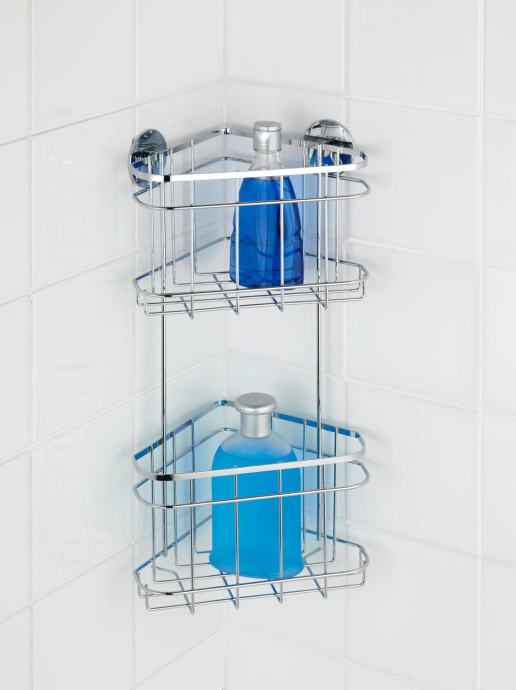 Kotni regal Wenko Turbo-Loc z 2 etažama je izdelan iz kakovostnega sijajnega legiranega jekla in zaradi visokih košar zagotavlja stabilno postavitev kopalniških pripomočkov. Tehnika lepljenja Turbo-Loc pomeni trdno namestitev na steno, pri čemer ni potrebno orodje. Preprosto odlepite zaščitno folijo in pritrdite na steno. Zaradi te hitre in preproste namestitve lahko kotni regal kadar koli tudi odstranite brez ostankov.