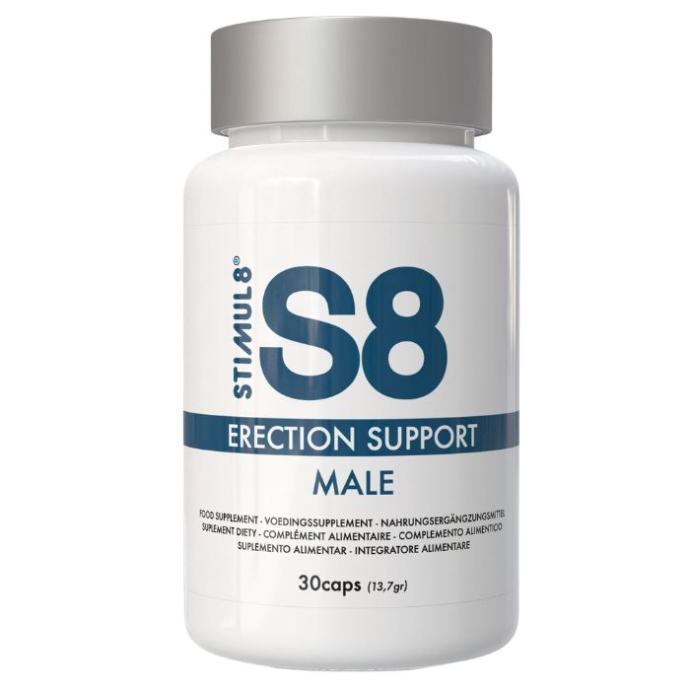 Podpora, ki prebudi vašo moškost in vitalnost Kapsule S8 Erection Support so vaš naravni zaveznik za izboljšanje spolnega zdravja, moči in splošnega dobrega počutja. Ta edinstven dodatek, ustvarjen posebej za moške, vsebuje premišljeno kombinacijo rastlinskih izvlečkov in esencialnih vitaminov, ki podpirajo boljšo cirkulacijo, višjo raven energije ter mentalno ravnovesje. Bogata formula z izvlečki Panax Ginsenga, zelenega čaja in ginka bilobe učinkovito spodbuja krvni obtok, povečuje energijo in krepi koncentracijo. Dodatek vitaminov C, B3 in B12 pa zmanjšuje utrujenost ter podpira normalno presnovo energije, s čimer boste lahko vedno pripravljeni na intimne trenutke. Kaj jih dela tako posebne? Panax Ginseng – Spodbuja vitalnost, izboljšuje prekrvavitev in dviguje splošno raven energije. Zeleni čaj – Naravni antioksidant, ki pripomore k izboljšani telesni vzdržljivosti. Ginkgo Biloba – Podpira optimalno cirkulacijo ter prispeva k jasnosti in mentalni svežini. Vitamin C, B3 in B12 – Pomagajo zmanjšati utrujenost in povečajo energijski nivo za boljšo vzdržljivost. Naravna formula – Brez sintetičnih dodatkov za varen in učinkovit način izboljšanja spolne moči in zaupanja. Zakaj jih morate imeti? Kapsule S8 Erection Support so popolna izbira za moške, ki želijo izboljšati svojo intimno samozavest in vitalnost na naraven način. Ta izjemna mešanica aktivnih sestavin podpira vašo vzdržljivost, povečuje energijo ter zagotavlja sproščenost in mentalno pripravljenost. Vsakodnevni odmerek (štiri kapsule z vodo 30 minut pred želeno aktivnostjo) vam bo omogočil, da izkoristite ves svoj potencial in ustvarite nepozabne intimne izkušnje.V skladu z Uredbo (EU) št. 432/2012 o seznamu dovoljenih zdravstvenih trditvah o živilih, prehranskemu dopolnilu S8 Erection Support ne smemo pripisovati zdravilnih učinkov. Predlagamo, da nas za več informacij o izdelku pokličete na brezplačno številko 080 12 99 vsak delovnik v času naših uradnih ur ali pa na 031 397 946, ali si preberete več o izdelku na tujih spletnih straneh. Kapsule, prehransko dopolnilo Vsebina: 30 kapsul, 13,7 gr Navodila za uporabo: Vzemite 4 kapsule 1x na dan z zadostno količino vode. Ne vzemite več kot 4 kapsule v 24 urah. Sestavine (na 4 kapsule): 600 mg Panax Ginseng extract 2:1; 528 mg Vitamin C (L-ascorbic acid) (660% RI*); 514 mg Green tea extract 50% polyphenol (15% EGCG); 64 mg Ginkgo Biloba leaf extract 2:1; 30 mg Vitamin B3 (Niacin) (188% RI*); Filling agent: rice flour; Anti-caking agent: E470b; 1.5 µg Vitamin B12 (Cyanocobalamin) (60% RI*); Capsule: E464. (*RI = Reference Intake) Opozorila: To je prehransko dopolnilo z vitamini in zelišči. Prehranskega dopolnila se ne sme uporabljati kot nadomestek za raznoliko in uravnoteženo prehrano ter zdrav način življenja. Hranite izven dosega otrok. Shranjujte v hladnem in suhem prostoru. Lahko vpliva na delovanje antikoagulantov (zdravil za redčenje krvi). Največji dovoljeni dnevni odmerek EGCG (epigalokatehin-3-galat) je 800 mg. Ne uživajte na prazen želodec ali v kombinaciji z drugimi izdelki iz zelenega čaja. Ni primerno za otroke, mlajše od 18 let, ter med nosečnostjo ali dojenjem. Proizvajalec: Stimul8 / S8, Bijsterhuizen 3151, 6604 LV, Wijchen, Nizozemska | www.stimul8.eu Odgovorna oseba / podjetje: Stimul8 / S8, Bijsterhuizen 3151, 6604 LV, Wijchen, Nizozemska | www.stimul8.eu