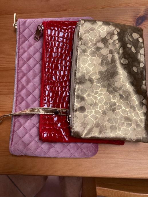 Prodam toaletne torbice. Uporabne tudi kot manjše denarnice, etui... nove, nerabljene. Lahko vse troje ali posamično. Cena je za eno, s poštnino.