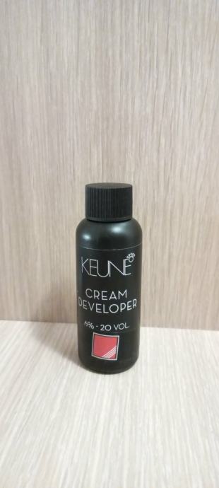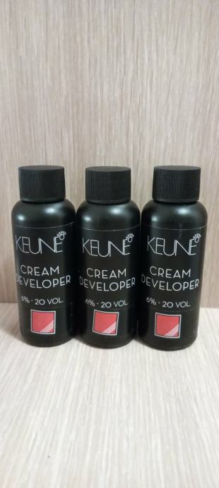 Prodajam razvijalec barve za lase (blagovna znamka Keune), 60 ml, vsebuje kremni hidrogen 6% in LP 300 stabilozator. Izdelek preprečuje bledenje barve, obenem pa nudi dodatno nego in zaščito las.