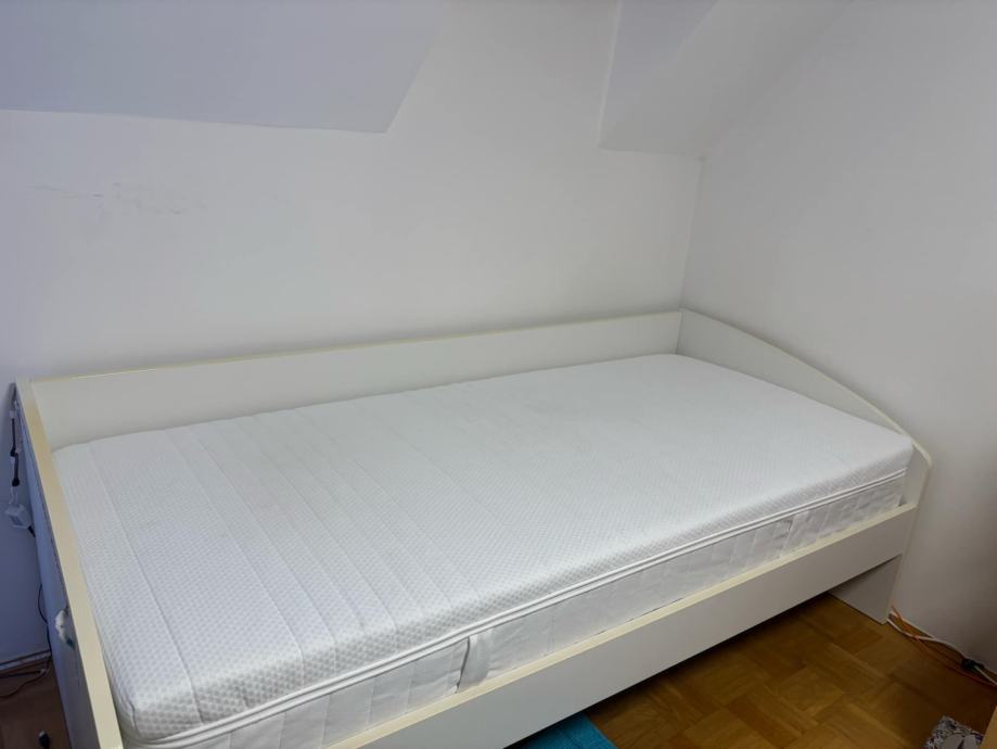 V kompletu je vključena tudi vrhunska vzmetnica Ikea Anneland, kupljena junija 2023, kot nova, z 10-letno garancijo (priložim kopijo računa, vrednost 299 €).