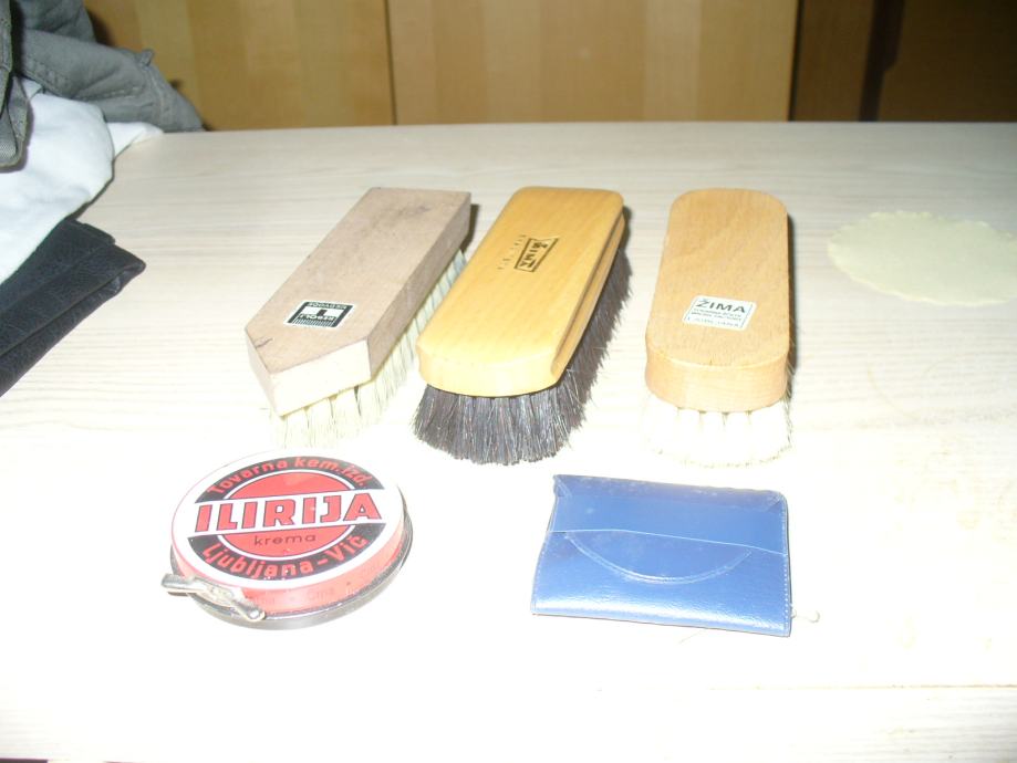 Vojaški komplet za vzdrževanje obutve. V maskirnem etuiji - nov - 15 eu, v malem modrem etuiju sivanke z sukancem in rezervni gumbi za uniformo