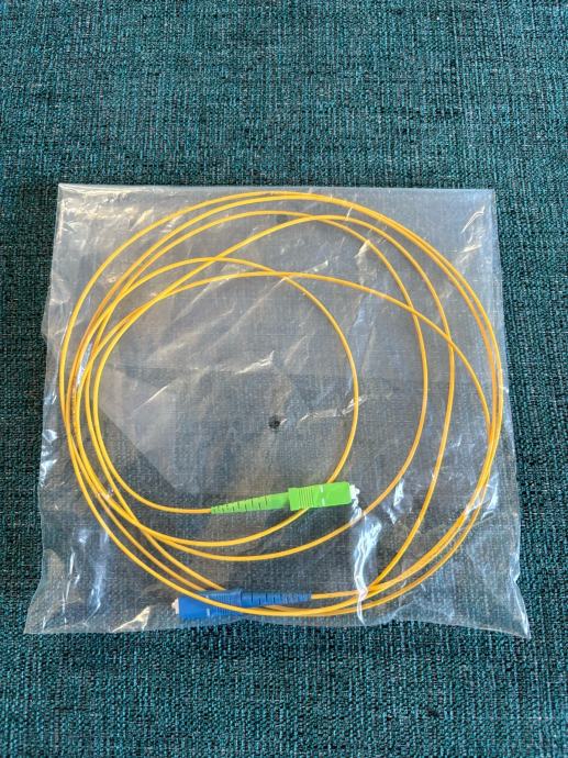 Prodajam nov optični kabel dolžine 3 metre, ki je še v originalni embalaži. Kabel ima rumeno zunanjost in zelene/modre konektorje, idealen za mrežno povezavo. Popolnoma nov izdelek, primeren za vse, ki potrebujete zanesljivo optično povezavo.