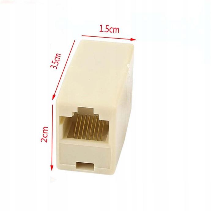 SPECIFIKACIJA – material: plastična vtičnica: 2x RJ45 8p8c, mere (dolžina / višina / širina): 3,4×1,5x2cm; teža: 6g