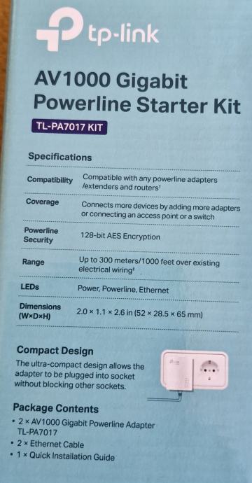 Deluje z vsakim usmerjevalnikom in je idealen za prostore, kjer je Wi-Fi signal šibek. Omogoča pretakanje HD vsebin in igranje spletnih iger do razdalje do 300 m po električnem omrežju. Zagotavlja varno žično omrežje za namizne računalnike, pametne televizorje ali igralne konzole.