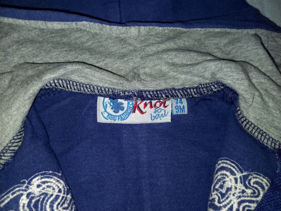 Prodam zelo malo nošeno jopico in pulover za fantka št. 74. Oboje je zelo ohranjeno, brez napak, nošeno pri enem otroku. Jopica je znamke knot so bad, pulover pa znamje noppies, oboje je bilo kupljeno v trgovini baby center.