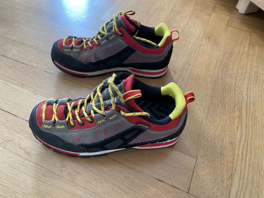 Prodam dobro ohranjene pohodniške čevlje znamke Alpina, v rdeče črni barvi, velikosti 39. Čevlji so nepremočljivi. Prodam jih, ker se selim in ker jih ne potrebujem. Poštnina še ni všteta v ceno, osebni prevzem pa je možen v Kranju.