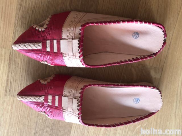 Copati/cokli maroški, novi, usnjeni, 38/39 (bolj ustrezajo velikosti 38), kupljeni nekoliko premajhni v Maroku, primerni kot notranja ali zunanja obutev. Tel 041 375 304.Prevzem možen v Ljubljani ali Škofji Loki, lahko pošljem tudi po pošti.