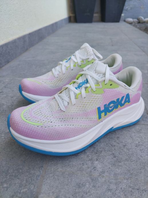 Hoka Rincon 4 tekaški copati, velikost 40 2/3. Kot novi, obuti enkrat (15 minut, poskusni tek), žal mi ne odgovarjajo ker so mi preozki v sprednjem delu copata.