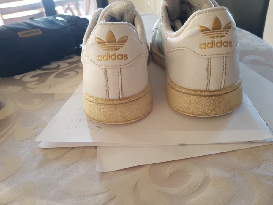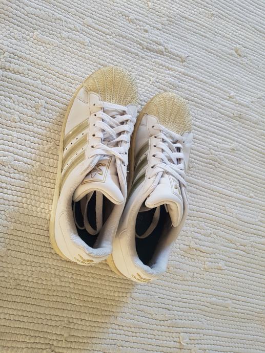 Prodam ženske usnjene Adidaske št FR 39 1/2 malo nošene. So bele barve, z zlatimi črticami.