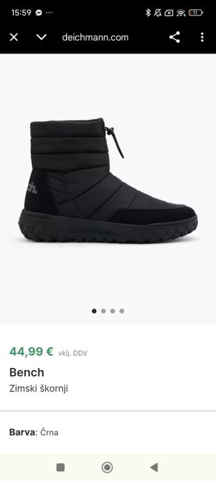 Prodajam NOVE črne zimske čevlje znamke Bench, velikosti 42, ki so bolj primerni za številko 41. Čevlji so topli, udobni in popolnoma novi, idealni za hladne zimske dni. Redna cena je 50€. Kupila sem premajhne in če pridejo komu prav jih prodam po nižji ceni.