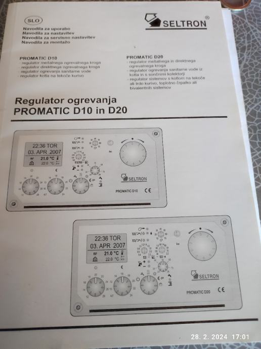 Prodam SELTRON PROMATIC D 20 regulator,malo rabljen kot nov ,z navodili in tipali,zunanje in notranje senzorji.