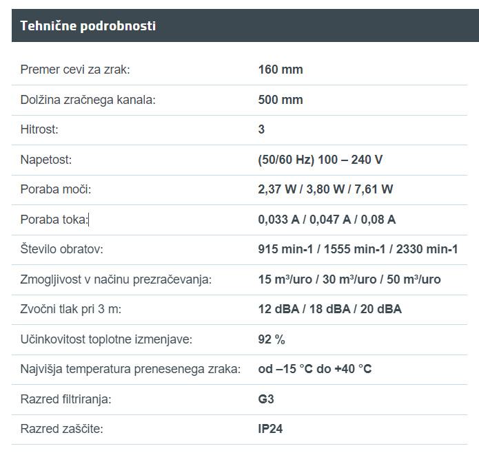 Dva vgrajena zračna filtra s filtracijo G3 poskrbita za čistočo dohodnega in odhodnega zraka
